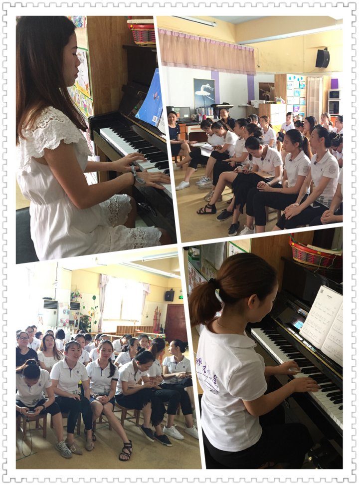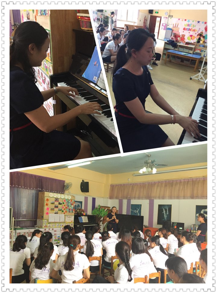 在整個活動過程中,老師們都以熱情飽滿的情緒,盡情的發(fā)揮,隨著指尖彈奏著琴鍵配以清脆的歌喉,在陳主任彈奏的“成都”和李園長獻上的一首“牽手”為此次活動拉下了序幕。最后,李園長對本次活動做了簡要的小結(jié),指出了老師彈奏過程中存在的問題,并對參加考核的部分老師提出了如何提高基本技能的建議。