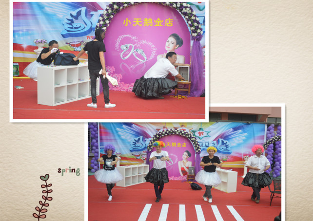 為了讓孩子們度過有一個難忘而精彩的節(jié)日,大家我們老師和家長做了充分的準備,在活動開展前兩個月,園長和辦公室的行政們多次和各班的家委召開會議研究制定方案,積極探索,因地制宜地制定了整個計劃——主題“歡慶六一.回歸童年”。在多次的研討后,各班的家委們?yōu)榱嗽诹划斕旖o孩子們一個驚喜也和本班的家長們進行了精心的策劃,從選擇節(jié)目、制作道具、節(jié)目排練、服裝準備,每一項工作都做的有條不紊。當然幼兒園也積極的配合著創(chuàng)從設環(huán)境到發(fā)放通知,教師們團隊合作精神也得到了淋漓盡致的展現(xiàn)。