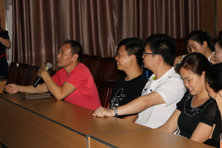 圖為:中班家長現(xiàn)場與講師進行互動問答