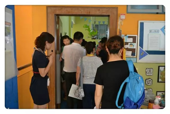 家長(zhǎng)、幼兒分為三組,分別佩戴黃色、粉色、藍(lán)色參觀證,分別由楊助理、楊主任、彭主任帶領(lǐng)參觀幼兒園環(huán)境以及進(jìn)班級(jí)觀察幼兒學(xué)習(xí)生活情況。