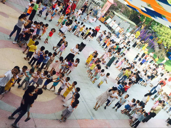 為提高幼兒英語(yǔ)口語(yǔ)能力,創(chuàng)造濃厚英語(yǔ)口語(yǔ)氛圍,在集團(tuán)學(xué)前教育中心的組織下,英語(yǔ)老師把口語(yǔ)融入到律動(dòng)和兒歌游戲中,讓幼兒進(jìn)行最有效地學(xué)習(xí)。同時(shí)為了提升集團(tuán)幼兒園晨間英語(yǔ)的組織質(zhì)量,實(shí)現(xiàn)資源的有效整合、經(jīng)驗(yàn)的共享,9月、10月份公明第二幼兒園進(jìn)行晨間英語(yǔ)10分鐘游戲(律動(dòng)、歌唱、兒歌)動(dòng)作編排、隊(duì)形的系列教研活動(dòng)。
