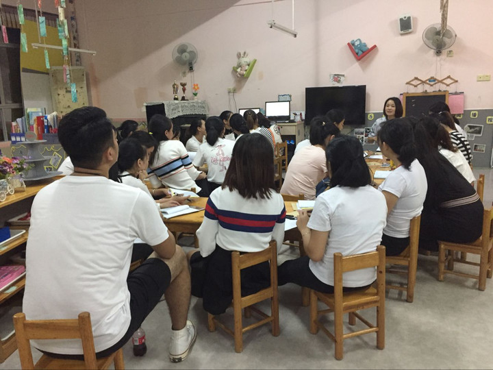對于早期閱讀我園師資處于非常薄弱的狀況,因而時常給學習和研究帶來許多困惑,反映了教師專業(yè)化水平的缺乏,特別是思想觀念轉(zhuǎn)變與實踐、行動的脫節(jié),缺乏實踐的總結(jié)研 討,往往使教學停止不前或前進步子太慢。作為幼兒教師,要想更好地對幼兒進行“傳道、授業(yè)、解惑”,必須重視自己的語言,要有一種既符合語法規(guī)范,又符合幼兒年齡特征和接受水平的語言風格,是非常重要的。為此,教師應(yīng)力求在幼兒注意集中的時間段內(nèi),用精簡的語言有效地解決問題。幼兒年齡小,理解能力較弱,這就決定了教師在使用語言時應(yīng)當避繁求簡。為了解決教師在日常教學活動中的困惑以及提升教師在閱讀語言方面的能力,本學期在教學處的引領(lǐng)與組織下,在2017年10月17日、18日組織了骨干教師進行優(yōu)質(zhì)課展示,并在10月18日晚上組織全體教師針對優(yōu)質(zhì)課程以及平時教學活動中存在的問題進行研討與分享。