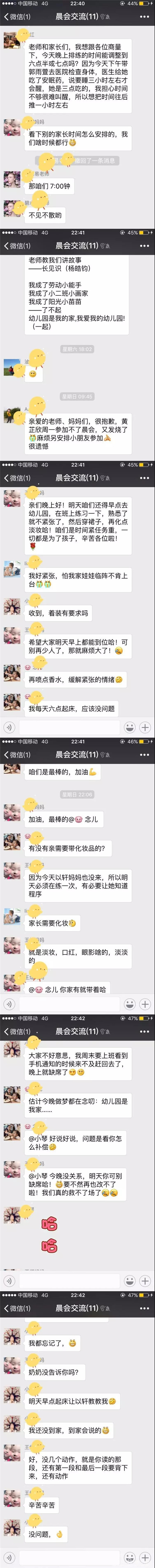 《快樂閱讀·健康成長(zhǎng)》主題晨會(huì)完美落幕,這里有孩子們可愛的演出,也有家長(zhǎng)們的參與,雖然臺(tái)上僅僅是幾分鐘的時(shí)間,背后從開始節(jié)目的選定到最后的節(jié)目展示,中間也有小狀況,但這都不影響家長(zhǎng)們的熱情,晚上繼續(xù)抽時(shí)間排練,還生怕節(jié)目出現(xiàn)一丁點(diǎn)瑕疵,你看這剛排練回去就開始討論起來了……