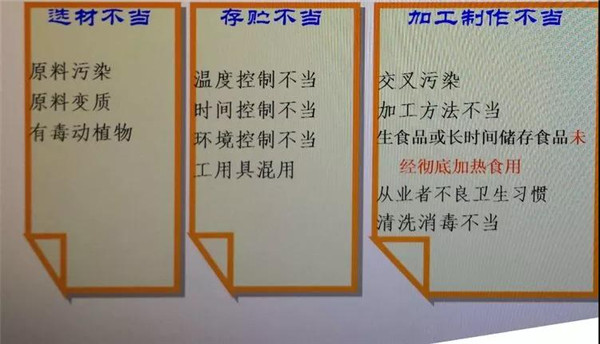 生活中食品中毒發(fā)生的原因通常是選材不當(dāng),存貯不當(dāng),加工制作不當(dāng),我們要杜絕發(fā)生!