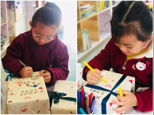 生日禮物也是別出心裁,孩子們真認(rèn)真的給包裝紙上進(jìn)行繪畫(huà)裝飾呢!