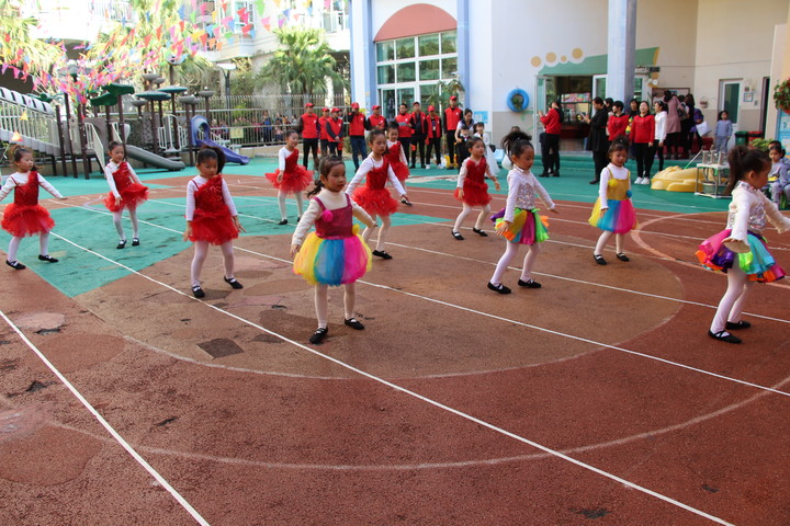 在活動(dòng)的開(kāi)始階段,大班的姐姐們?yōu)榇蠹規(guī)?lái)了舞蹈SHOW!快看他們的身影多么絢爛多彩呀!
