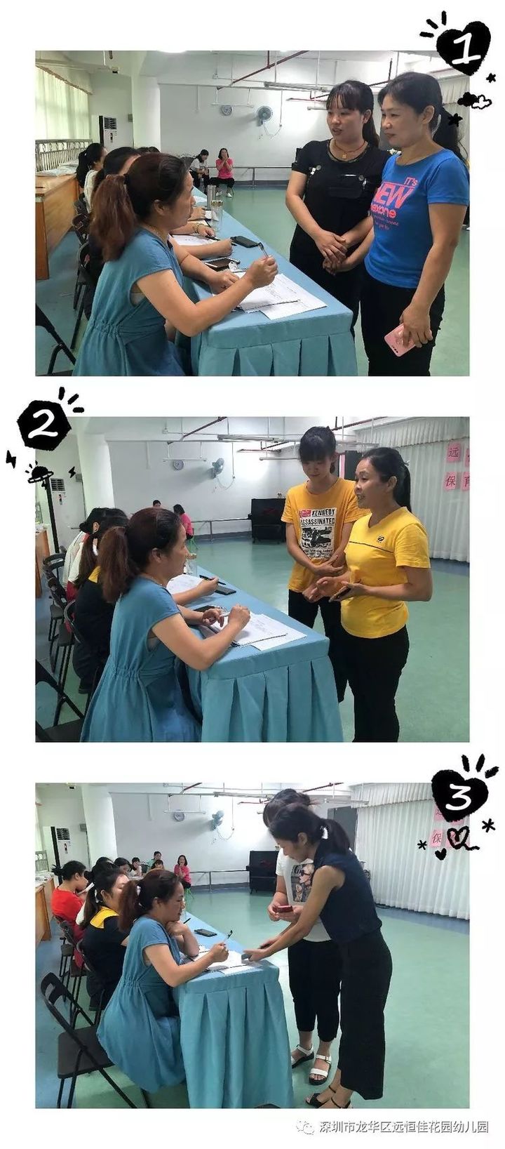 題目主要圍繞幼兒日常保育護理、消毒知識、規(guī)范行為等。時間為30分鐘。開始前所有保育老師都將自己的手機收好,她們正低頭思考,認真做題。