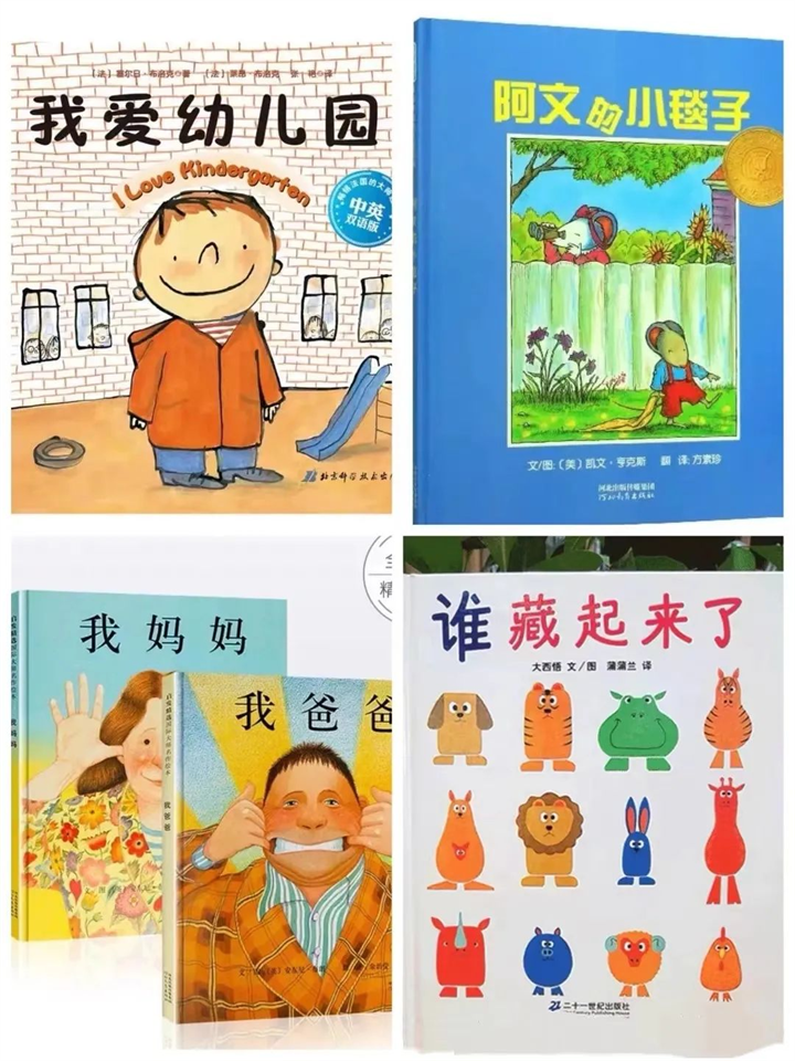 《我愛幼兒園》《加油雞蛋哥哥》《阿文的小毯子》《會響的小路》《我爸爸》《最大號的擁抱》《誰藏起來了》《小藍和小黃》《小牙刷,刷,刷,刷》。