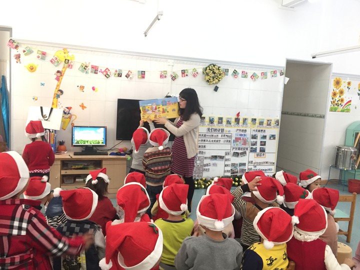 家長義工在講關(guān)于圣誕節(jié)的故事