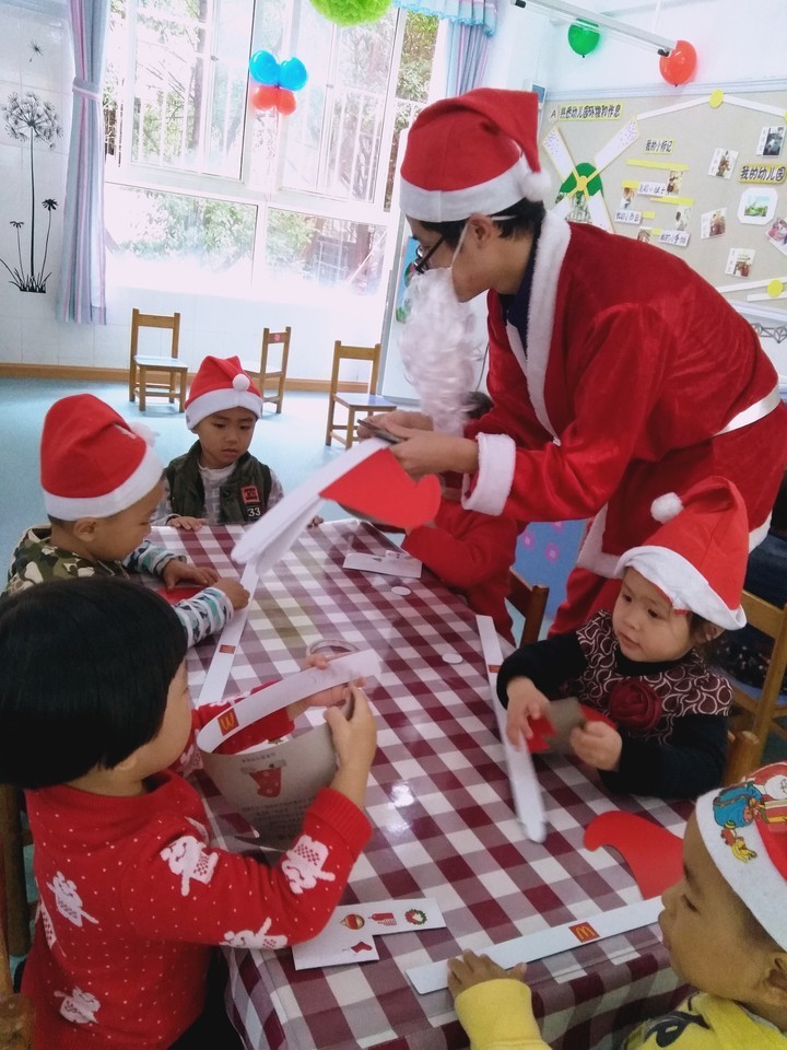 接著各班級都展開了豐富多彩的圣誕節(jié)活動。有的班級通過講故事讓孩子們了解圣誕節(jié)的由來和感受歡樂的氣氛;有的班級帶著孩子們制作圣誕襪或者圣誕老人;有的班級帶領(lǐng)孩子們扮演圣誕老人給全園的孩子們發(fā)糖果;還有的班級則是請來了家長義工扮演圣誕老人帶著孩子們一起玩游戲、分享禮物。