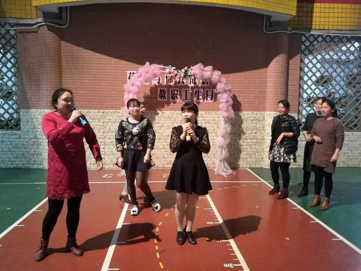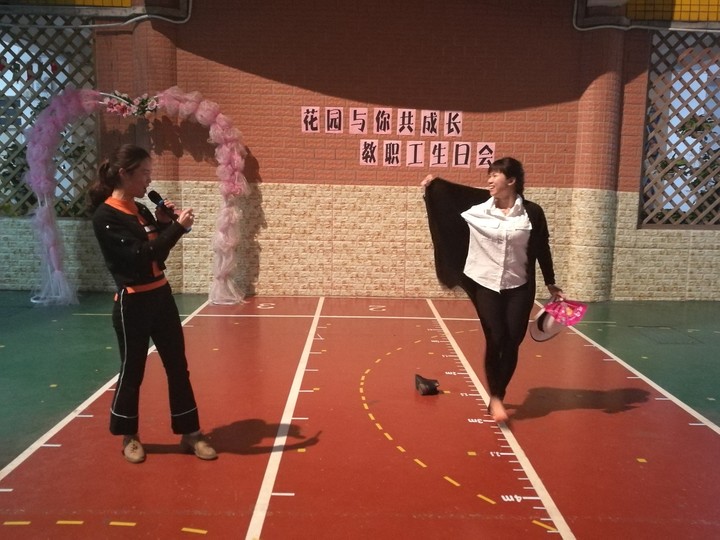 搞笑而歡樂的開場舞串燒,逗得在場的教職工們捧腹大笑,這是一份最奇特的生日禮物。接下來是好玩的游戲時(shí)間,這次工會(huì)為大家準(zhǔn)備了兩個(gè)游戲,分別是傳遞吸管和我唱你跳,教職工們分組競賽,大家通力合作、團(tuán)結(jié)一致。場上摩拳擦掌,場下吶喊聲、加油聲不斷。這是一份最特別的生日禮物。緊接著,曾園長、馬主任、大張老師、小張老師為壽星們獻(xiàn)上了最真摯的生日祝福,這是一份最溫馨的生日禮物。