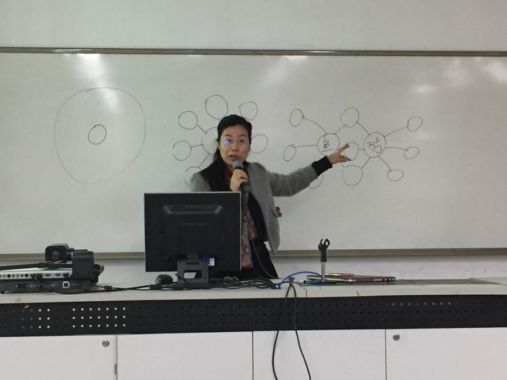 12月31日是我們?cè)凇懊缙怨こ獭睂W(xué)習(xí)活動(dòng)的最后一天,優(yōu)雅睿智的黃娟教授給我們分享了《思維可視化工具在幼兒教育中的應(yīng)用》。思維導(dǎo)圖又叫心智圖,是表達(dá)發(fā)射性思維的有效的圖形思維工具 ,它簡(jiǎn)單卻又極其有效,是一種非常強(qiáng)的記錄思維工具。思維導(dǎo)圖充分運(yùn)用左右腦的機(jī)能,利用記憶、閱讀、思維的規(guī)律,協(xié)助人們?cè)诳茖W(xué)與藝術(shù)、邏輯與想象之間平衡發(fā)展,從而開(kāi)啟人類(lèi)大腦的無(wú)限潛能。她結(jié)合幼兒園孩子的學(xué)習(xí)品質(zhì)給我們列舉了很多適合幼兒園教學(xué)的思維導(dǎo)圖!讓大家茅塞頓開(kāi)!她還分享了思維導(dǎo)圖的8大圖示:圓圈圖 氣泡圖 雙氣泡圖 樹(shù)形圖 括號(hào)圖 流程圖 復(fù)流程圖、橋形圖。最后黃娟教授讓六組老師自選一個(gè)題目通過(guò)思維導(dǎo)圖的形式展現(xiàn)出來(lái)!課堂氛圍馬上活躍起來(lái)!各組教師積極參與討論和繪圖中,十幾分鐘的時(shí)間,一張張各具特色的思維導(dǎo)圖呈現(xiàn)出來(lái)了!黃娟教授對(duì)幼兒園教師的專(zhuān)業(yè)素養(yǎng)給予很高的評(píng)價(jià):幼兒教師不愧是彈、唱、跳、繪畫(huà)樣樣精通的專(zhuān)業(yè)技術(shù)人員!