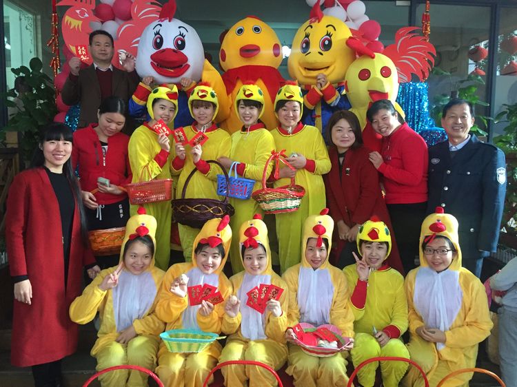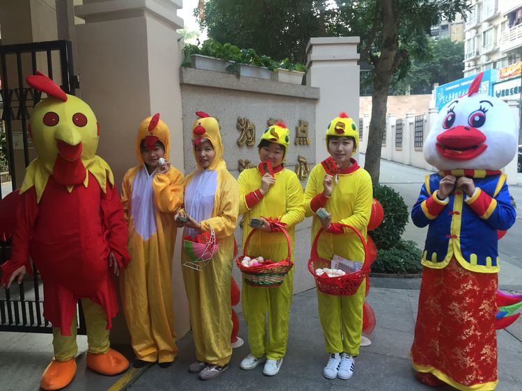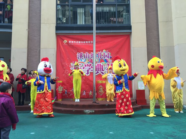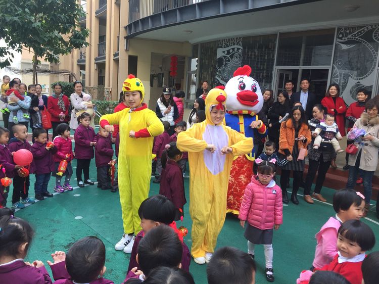 老師和爸爸們裝扮成喜氣洋洋的吉祥雞在門口迎接小朋友們的到來!看那一張張洋溢著幸福的笑臉~咱們新的一學(xué)期就此開幕!