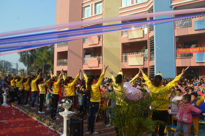 最后在優(yōu)雅的園歌中,開學(xué)典禮接近了尾聲,小朋友都跟著一起忘情的跳著,唱著,其樂融融。