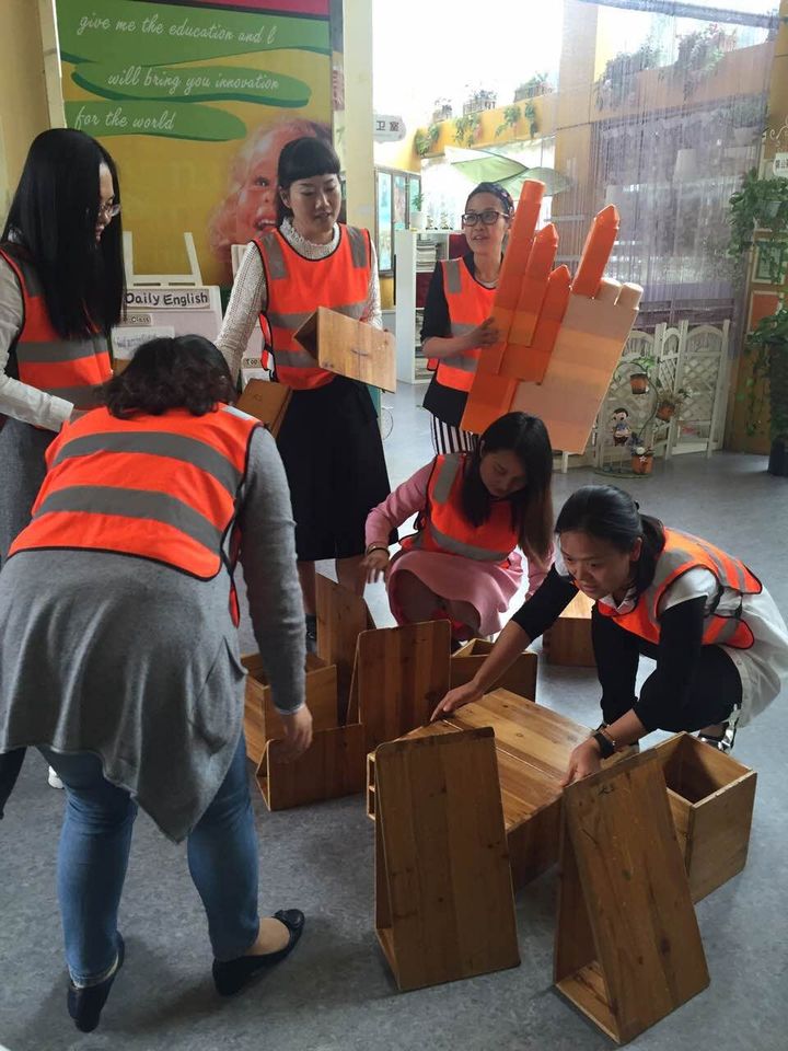 針對有關建構區(qū)域教學的疑問,謝主任詳細地跟家委們講解了建構區(qū)的相關知識,加強了家長們對這個區(qū)域教學的認知,同時還讓家長朋友們親自去嘗試了一回搭建工作,在操作的過程中,家長也從中獲得了一定的經(jīng)驗提升。
