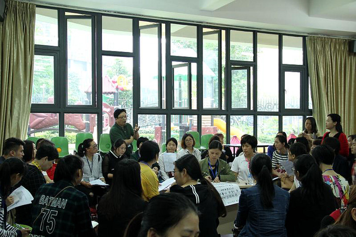 為展示寶安幼教集團(tuán)辦學(xué)成果,共享我區(qū)最先進(jìn)的教育教學(xué)經(jīng)驗(yàn),發(fā)揮公辦園在學(xué)前教育發(fā)展中的引領(lǐng)、示范作用,經(jīng)寶安區(qū)教科院綜合教研部與幼教集團(tuán)共同研究、策劃,決定向全區(qū)骨干幼兒園的開(kāi)展系列半日觀摩集體教研活動(dòng)。寶安區(qū)教科院以《幼兒園工作規(guī)程》為統(tǒng)領(lǐng),穩(wěn)步推進(jìn)《幼兒園教育指導(dǎo)綱要》、《3-6歲兒童學(xué)習(xí)與發(fā)展指南》、廣東省《幼兒園一日活動(dòng)指引》對(duì)課程教學(xué)的各項(xiàng)要求,突出學(xué)習(xí)環(huán)境在幼兒教育中的基礎(chǔ)性作用,強(qiáng)調(diào)一日生活的合理安排,規(guī)范園本課程建設(shè),有重點(diǎn)、分階段推進(jìn)我區(qū)幼兒園教育教學(xué)工作,不斷提升教師的教育理念和專(zhuān)業(yè)水平。2017年4月25日上午在寶安區(qū)教科培秦義老師的組織下在寶安區(qū)新城幼兒園面向全區(qū)骨干幼兒園進(jìn)行了全語(yǔ)言和戶外自主活動(dòng)的半日觀摩活動(dòng)。