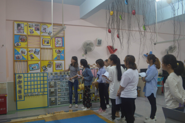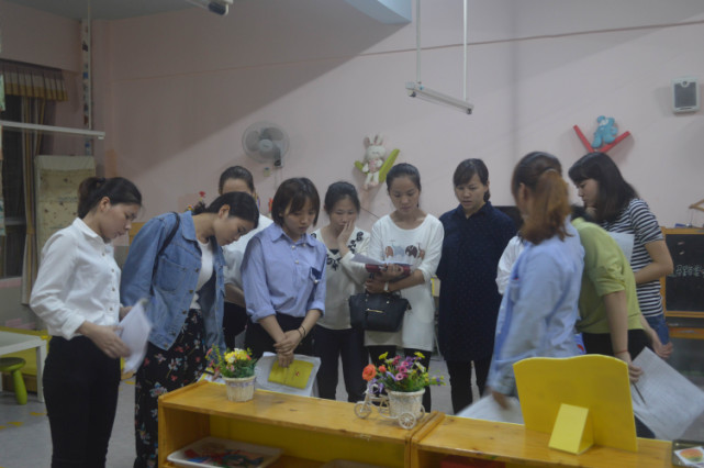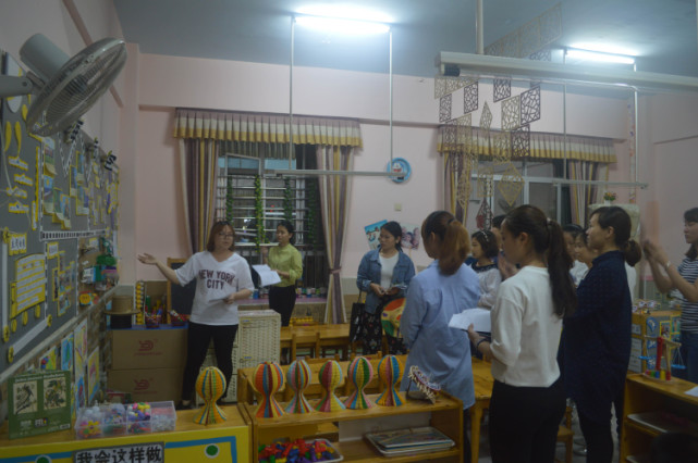 在王園長的引導下老師們一起研討如何更好地優(yōu)化區(qū)域材料