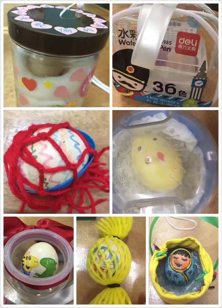 為了讓孩子獲得“愛”與“被愛”的雙重體驗(yàn),激發(fā)對(duì)媽媽的感恩之情,體驗(yàn)媽媽撫養(yǎng)寶寶的辛苦,同時(shí),也為了增強(qiáng)孩子的責(zé)任感,培養(yǎng)孩子們輕拿輕放的好習(xí)慣, 2017年5月8日至5月12日遠(yuǎn)恒佳花園幼兒園各班級(jí)開展了護(hù)蛋活動(dòng),孩子們帶著他們的“蛋寶寶”高高興興的來到幼兒園,首先與小伙伴們分享了自己制作的“蛋寶寶”的模樣和名字,在幼兒園的一日生活中她們像大人照顧小孩子一樣小心地呵護(hù)著自己的“蛋寶寶”,一起游戲、進(jìn)餐、上課、散步……,集體活動(dòng)時(shí),孩子們讓“蛋寶寶”坐在身邊一起跟老師學(xué)本領(lǐng);午飯時(shí),孩子們一手緊緊地握著“蛋寶寶”一手拿勺子吃飯,生怕自己的“蛋寶寶”受到損壞;午睡時(shí),孩子們躺在床上,細(xì)心地照顧著“蛋寶寶”,一同進(jìn)入了甜美的夢(mèng)鄉(xiāng)。盡管孩子們?nèi)绱思?xì)心的照顧著自己的“蛋寶寶”,但還是有個(gè)別的孩子因?yàn)樘闷婊颉疤鐞邸弊约旱膶殞殞?dǎo)致自己的寶寶在此次護(hù)蛋行動(dòng)中“受傷或者失去生命”,面對(duì)這樣的結(jié)果,“小爸爸、小媽媽們”傷心極了,但是他們?cè)诶蠋煹墓膭?lì)下,很快從悲傷的情緒中調(diào)整過來,而且主動(dòng)挑起了幫好朋友保護(hù)“蛋寶寶”的責(zé)任。在接下來的整個(gè)護(hù)蛋行動(dòng)中,小朋友之間時(shí)而有相互提醒保護(hù)生雞蛋的鼓勵(lì)聲,時(shí)而有因?yàn)橐淮问韬鲎岆u蛋破碎的嘆息聲,也有圓滿完成“護(hù)蛋行動(dòng)”任務(wù)的歡呼聲。
