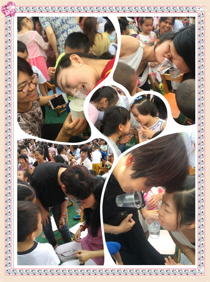 每人咬住一個水杯,只能用嘴將杯子中的水倒給下一位,最后杯中水剩下最多的一組為勝利組,將會獲得精美小禮物。