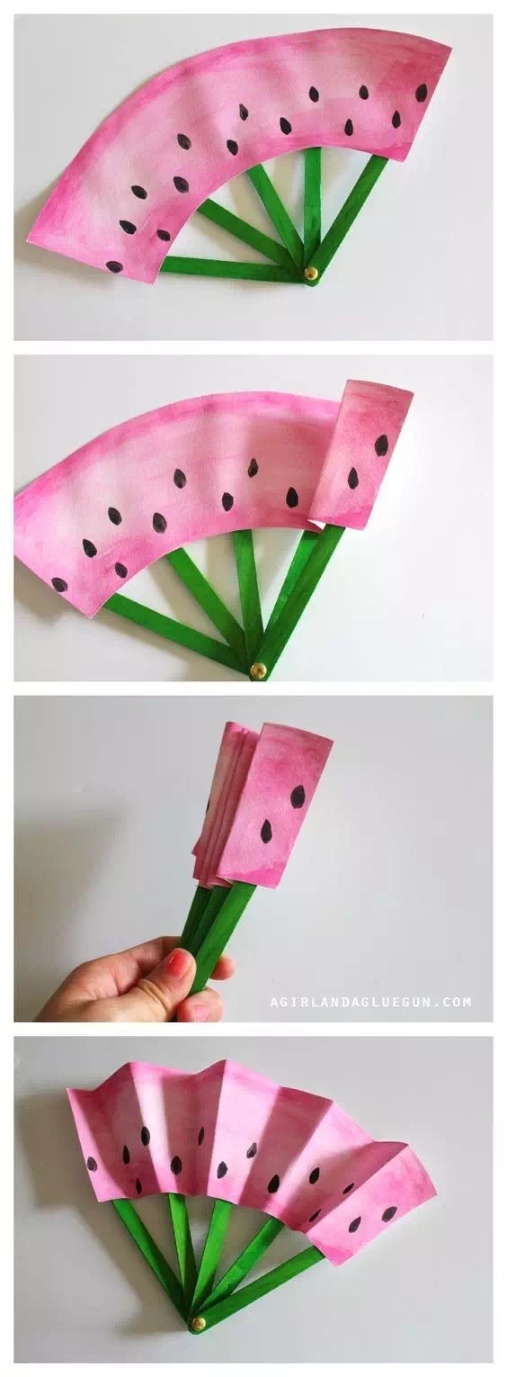 水果紙扇甜甜而來。做好的西瓜紙扇、橘子紙扇。也可以把你喜歡的水果做出來哦。有想咬一口的沖動!