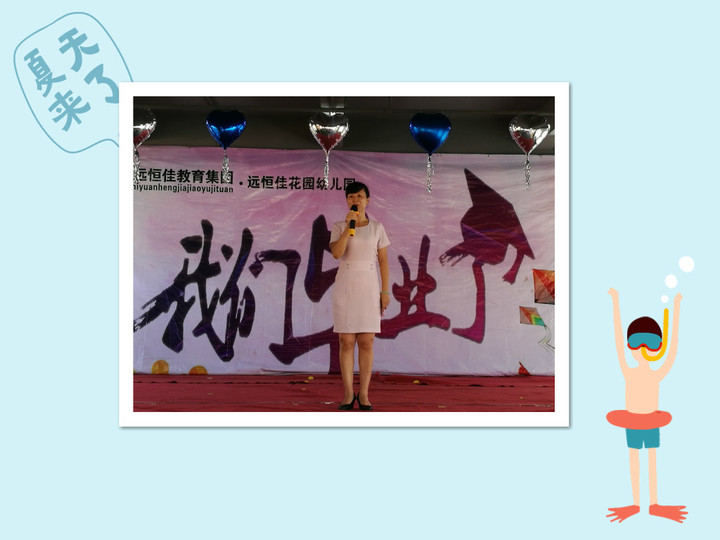 畢業(yè)典禮以老師們活力四射的舞蹈來開帷幕,老師們用舞蹈表達了對孩子們的祝福,祝福孩子們在未來的日子里永遠健康快樂的成長。緊接著是園長媽媽給孩子們美好的寄語,一句句美好的祝愿,讓孩子們對未來的生活充滿信心,也對即將到來的小學(xué)生活有了新的憧憬。