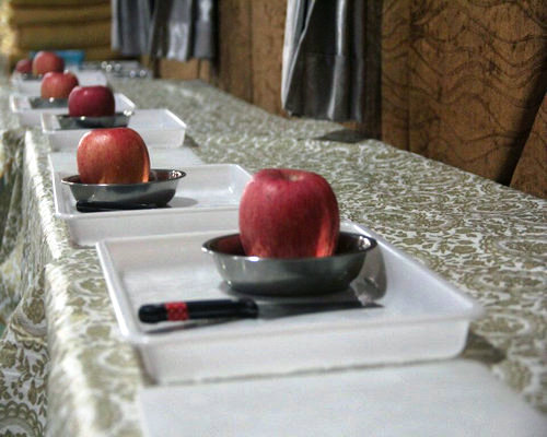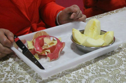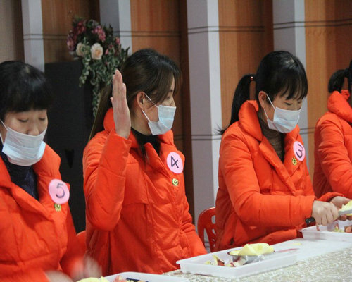 在這一個環(huán)節(jié)中,老師們做到了:皮兒薄、分塊均勻、擺放藝術(shù)。