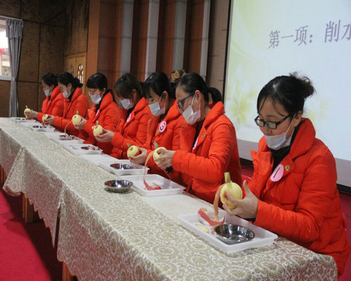 2017年12月27日上午9:30分,長壽區(qū)遠(yuǎn)恒佳實驗幼兒園、遠(yuǎn)恒佳陽光園、遠(yuǎn)恒佳菩提印象園全體保育老師在遠(yuǎn)恒佳教育集團(tuán)學(xué)前教育中心長壽分部的組織下進(jìn)行了削水果、疊被子兩項技能競賽。
