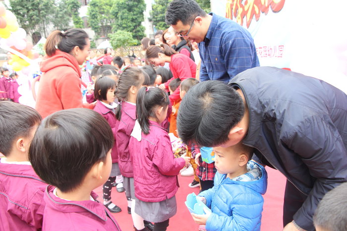本次開學典禮以老師們喜慶的舞蹈《財神來到我家》拉開了帷幕。首先,所有新生由家長帶領走紅毯,大班的哥哥姐姐為新生送上自己親手做的禮物,來歡迎新生加入我們這個大家庭,既消除了小班小朋友焦慮的情緒,又體驗了作為哥哥、姐姐的自豪感。然后是隆重而莊嚴的升旗儀式,鮮艷的五星紅旗在全體師生嘹亮的國歌聲中冉冉升起,全體師生心懷激動與憧憬。最后,曾園長進行開學典禮致辭,鼓勵全體師生為實現(xiàn)新學期的新目標共同努力,對本學期的工作與學習提出了新的希望。