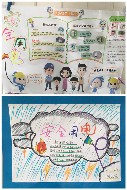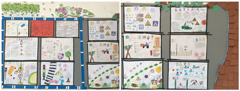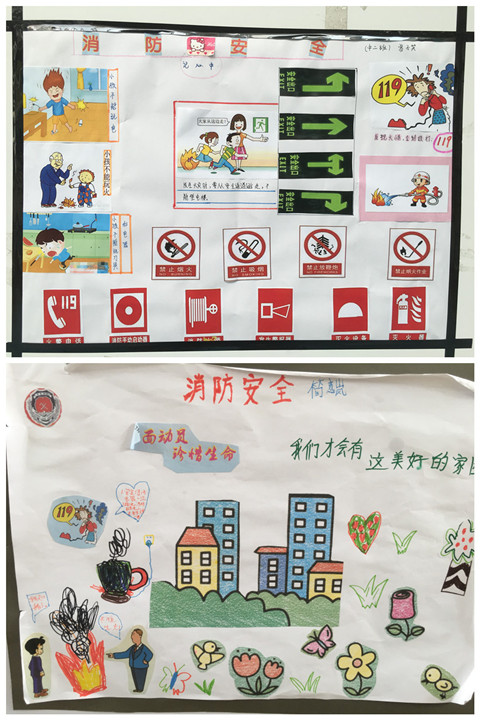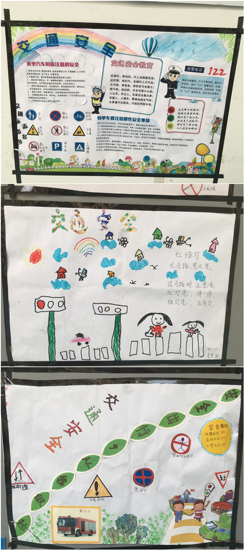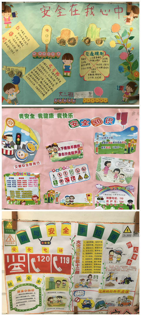 為了將枯燥的安全知識生動的展現(xiàn)在孩子面前,我園在走廊制作了兩塊《安全兒歌》板,張貼朗朗上口的安全兒歌、安全標(biāo)志、并配合卡通圖案,吸引幼兒認(rèn)識常見的安全標(biāo)志,孩子們在走廊散步的時候可以習(xí)得有關(guān)安全方面的知識。通過向家長發(fā)放致家長一封信和親子制作以食品安全、交通安全、消防安全、居家安全、自然災(zāi)害安全為主題親子剪貼報宣傳校園安全知識,增強幼兒和家長的安全意識,提高自護(hù)自救能力。