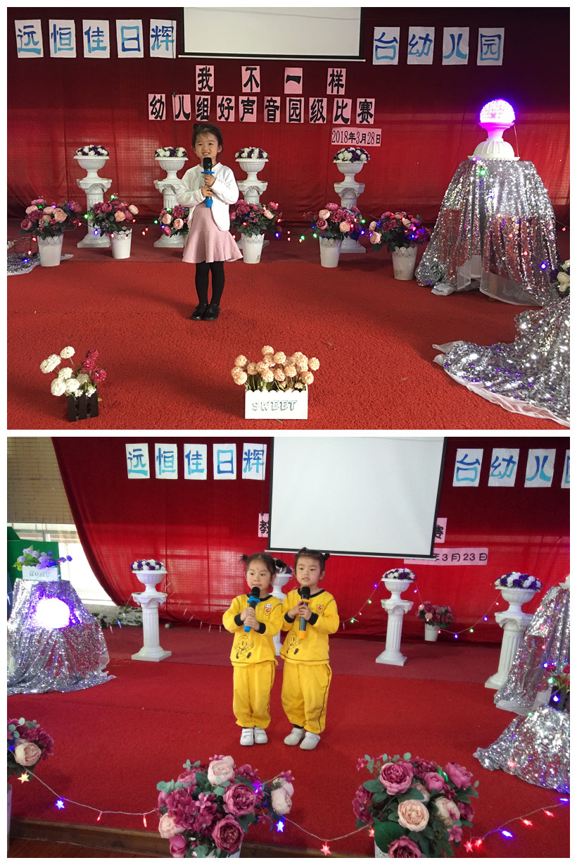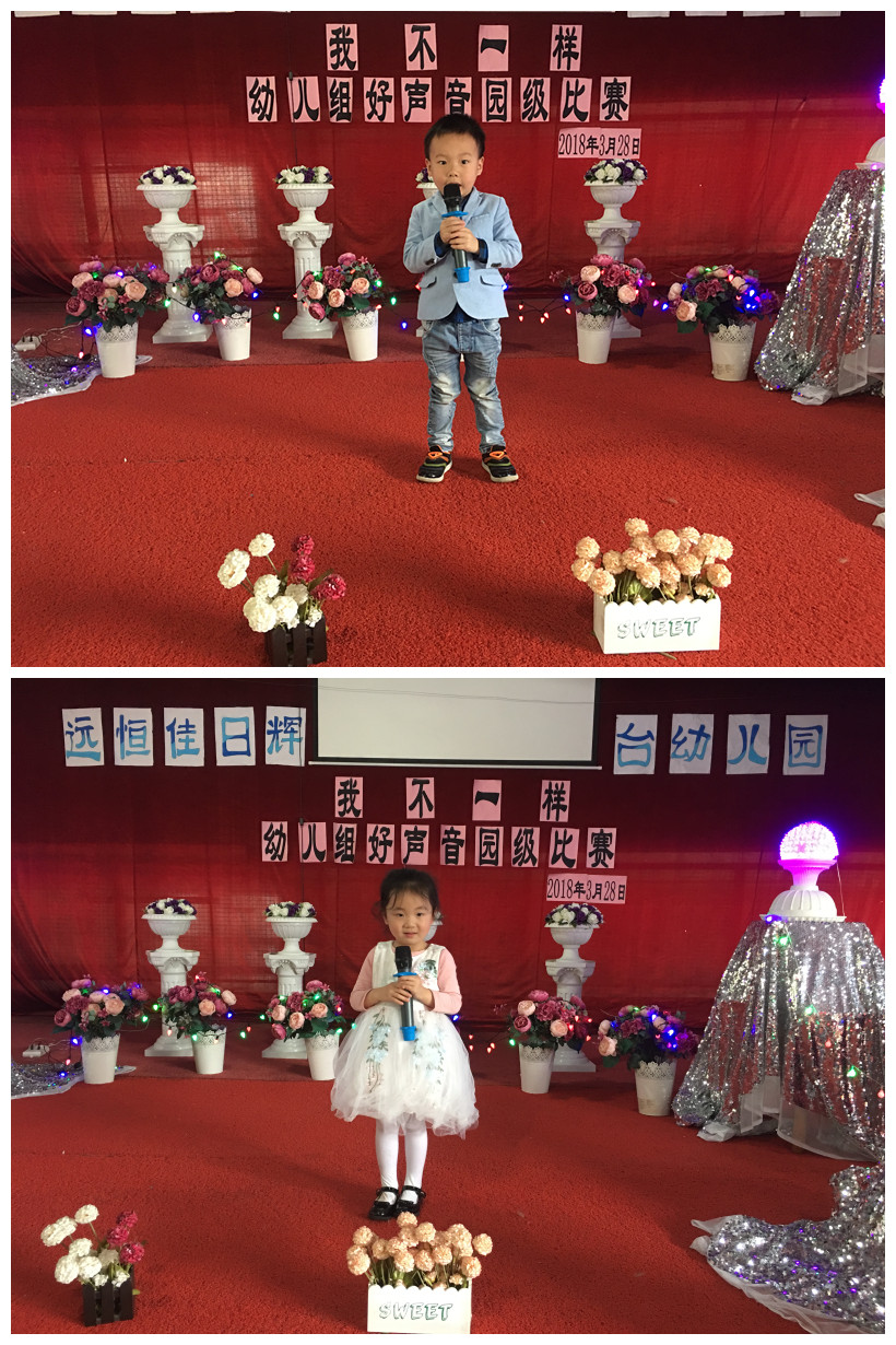 2018年3月28日上午我園舉行了“我,不一樣”幼兒好聲音比賽活動(dòng),為孩子們搭建了一個(gè)展示自我,鍛煉自我的平臺(tái),在舞臺(tái)上,孩子們個(gè)個(gè)落落大方,表情豐富,用他們甜美的歌喉唱出了一支支充滿童真、童趣的歌曲。既愉悅了心情又促進(jìn)了他們相互之間的學(xué)習(xí)和交流,提高了幼兒的音樂素質(zhì)。
