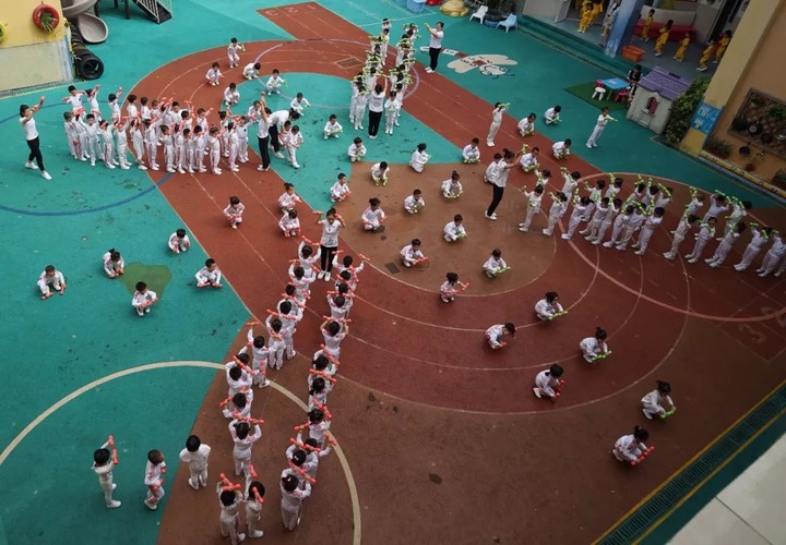 本次體操從音樂的選擇、動作編排到隊形設(shè)計,都融入了老師們的創(chuàng)意和教育智慧。體操包含隊列、操節(jié)、體能、放松四大部分。整套體操下來把多種形式的運動項目融為一體。