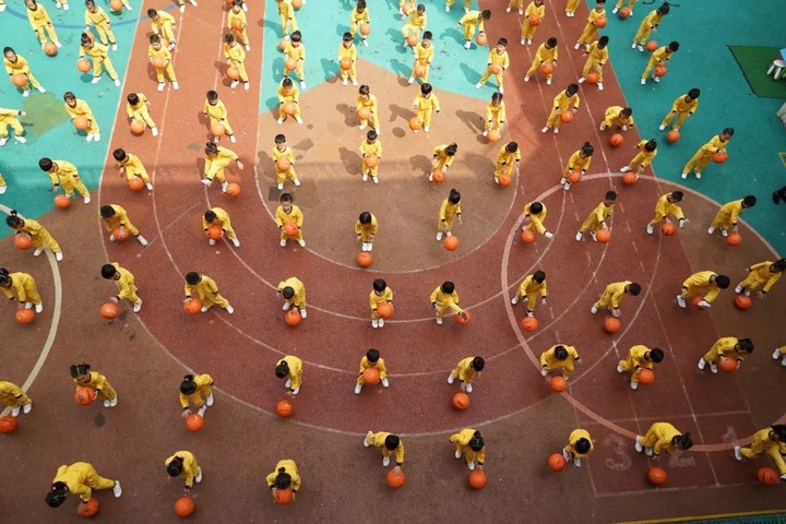 最后入場的是我們大班的哥哥姐姐們,他們帶來的是帥氣的籃球操,大班的孩子們個個精神抖擻、身輕如燕,用行動證明著最好的自己。走跑有序地隊形變換,震撼的球操展示,都讓人禁不住鼓掌叫好,籃球像著了魔一樣,在小朋友的手上愉快舞蹈,讓人贊嘆不已!