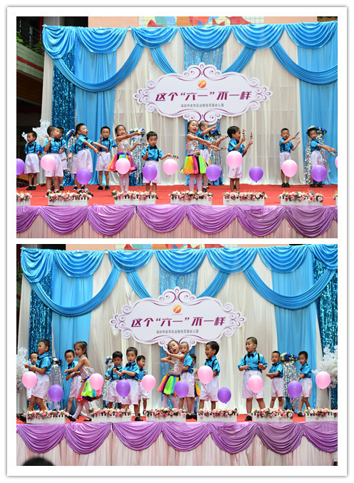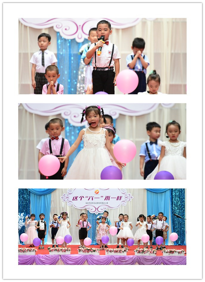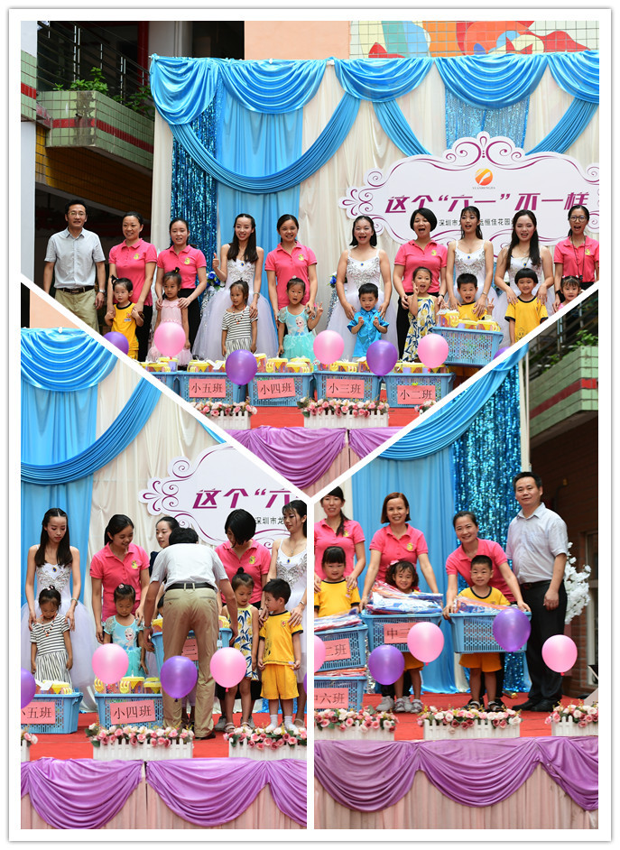本次六一不一樣,小朋友們不僅是小演員,也是小觀眾。小朋友們、家長和教師都身著盛裝,展示不一樣的自我,場面熱鬧紛呈。教師的情景舞蹈《梔子花開》,讓觀眾在南方炎熱的天氣里感受到了淡淡花香,如癡如醉。幼兒舞蹈《聰明寶貝》、《可愛娃娃》、《我可喜歡你》,寶貝們用自己的活潑可愛的舞姿展示出一個個活潑、調(diào)皮、聰明、可愛的小寶貝。幼兒英語串燒,寶貝們年齡雖小,卻毫不遜色,在唱英文歌曲的同時,還展示出了自己對英文的喜愛,贏得觀眾的陣陣陣陣掌聲與歡笑。中班小主持《媽媽的目光》、《親愛的小孩》,調(diào)皮搗蛋的小家伙們分秒變身為落落大方的小主持,用自己最獨特的嗓音,表達(dá)著自己心中對媽媽的愛。在本次六一匯演的最后,集團(tuán)領(lǐng)導(dǎo)還為寶貝們贈送了六一兒童節(jié)禮物。六一匯演結(jié)束后,家長們陪同小朋友回到教室,進(jìn)行“水果拼盤比賽”,一起感受快樂的親子時光與享受美味多樣的水果。