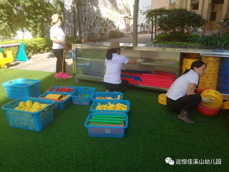 園內(nèi)各大衛(wèi)生死角、大型玩具等進行清理