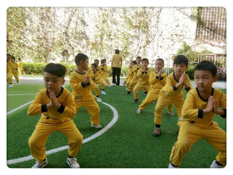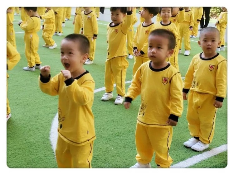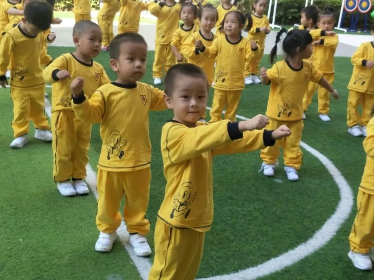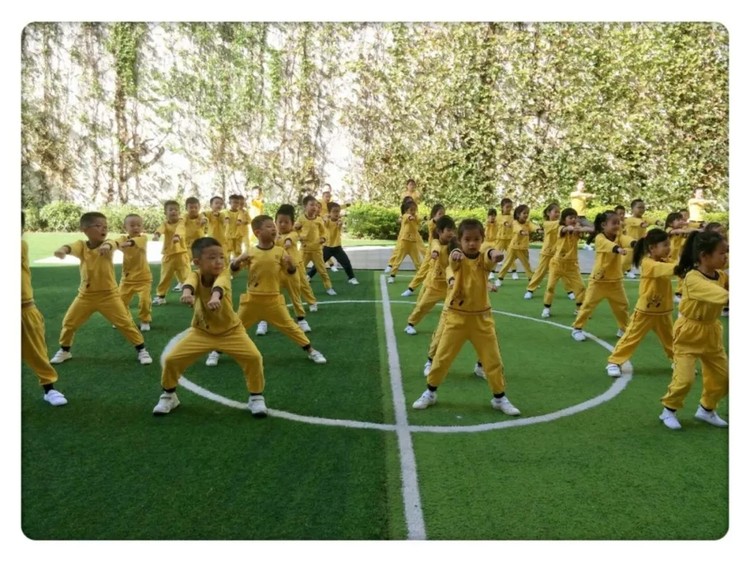 大班武術(shù)操《少年當(dāng)自強(qiáng)》,武術(shù)是中華傳統(tǒng)文化瑰寶,武術(shù)招式特別受大班幼兒所喜愛(ài)。操節(jié)展示中,干凈利落的動(dòng)作編排、場(chǎng)地方圓變化、激昂的音樂(lè),使大班幼兒的肌肉得到鍛煉,同時(shí)激發(fā)幼兒熱愛(ài)祖國(guó)的情感。