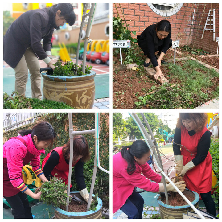 瞧,在曾園長和馬主任的帶領下,老師們也加入了植樹總動員。
