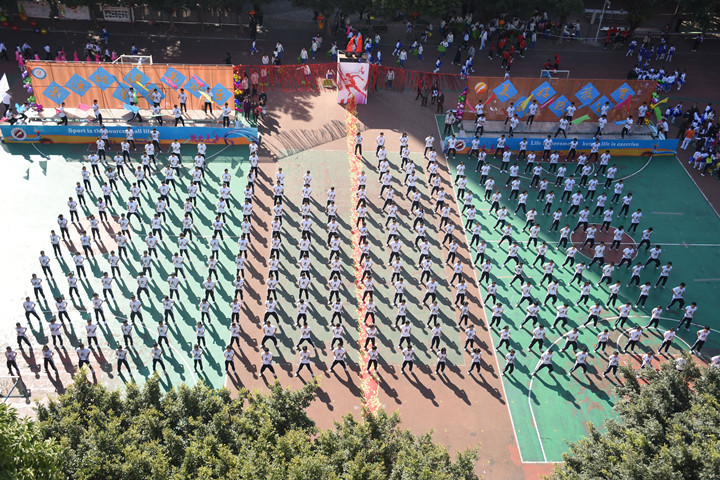 深圳市龍華中英文實(shí)驗(yàn)學(xué)校藝術(shù)體育作為“國(guó)際理解教育”、“藝體教育”、“創(chuàng)客教育”三大特色之一,從2017年秋季開始,在全國(guó)名校長(zhǎng)、特級(jí)教師,學(xué)校卜祥林校長(zhǎng)的帶領(lǐng)下,全面實(shí)施體育藝術(shù)分組分項(xiàng)教學(xué)改革,推進(jìn)“2+2”項(xiàng)目,通過(guò)藝體教育、陽(yáng)光大課間及社團(tuán)活動(dòng)培養(yǎng)學(xué)生至少掌握兩項(xiàng)體育技能和兩項(xiàng)藝術(shù)技能。這次運(yùn)動(dòng)會(huì)開幕式展演分為三大篇章八場(chǎng)大型體操和歌舞表演,近2000名中小學(xué)生,分不同年齡段,從不同層面展示了全面發(fā)展、快樂(lè)成長(zhǎng)的成果。
