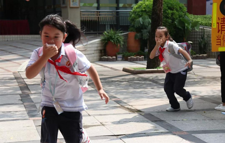 演練時(shí),參演現(xiàn)場(chǎng)模擬校車起火,校車司機(jī)打開前門,接送老師打開逃生門,并指引學(xué)生疏散到安全地帶。接送老師第一時(shí)間清點(diǎn)人數(shù),檢查學(xué)生有沒有人員“失聯(lián)”或“傷亡”。整個(gè)演練過程緊張有序,從開始疏散到全部安全撤離,只用時(shí)1分25秒。