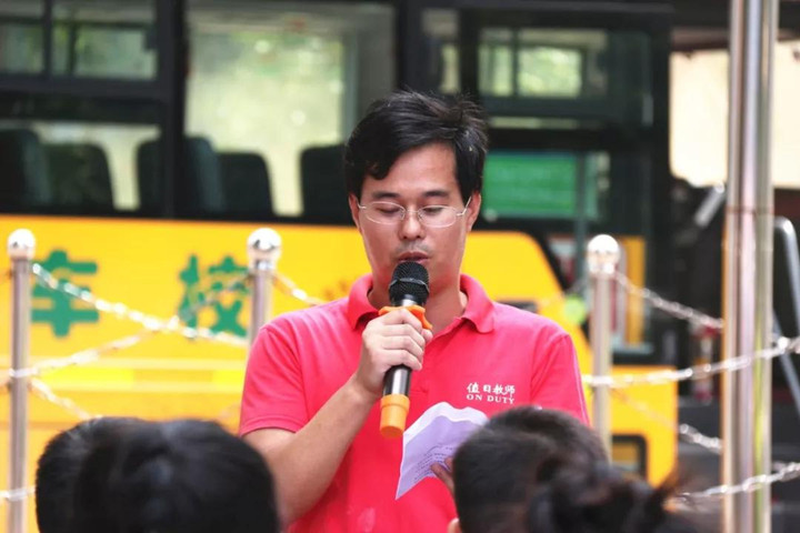 主管校車的張居彥主任強(qiáng)調(diào)校車應(yīng)急演練的重要性