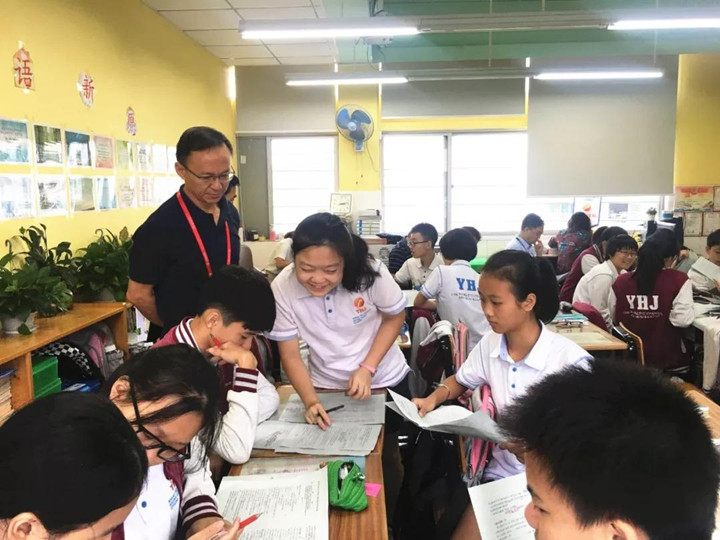 督導組成員在課堂上與學生互動,并與學部教學干部和上課教師親切交淡