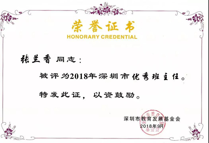 深圳市優(yōu)秀班主任獲得者:張?zhí)m香老師
