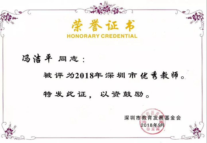 深圳市優(yōu)秀教師獲得者:馮潔平老師