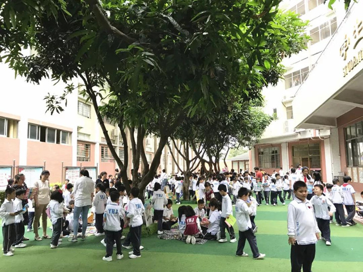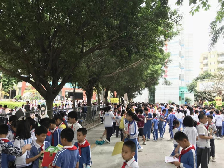 2018年11月16日下午,龍華中英文實驗學(xué)校小學(xué)部圖書拍賣跳蚤市場人頭攢動,校道兩邊、操場內(nèi)外、足球場上46個攤位各種書籍、招牌、海報鱗次櫛比。