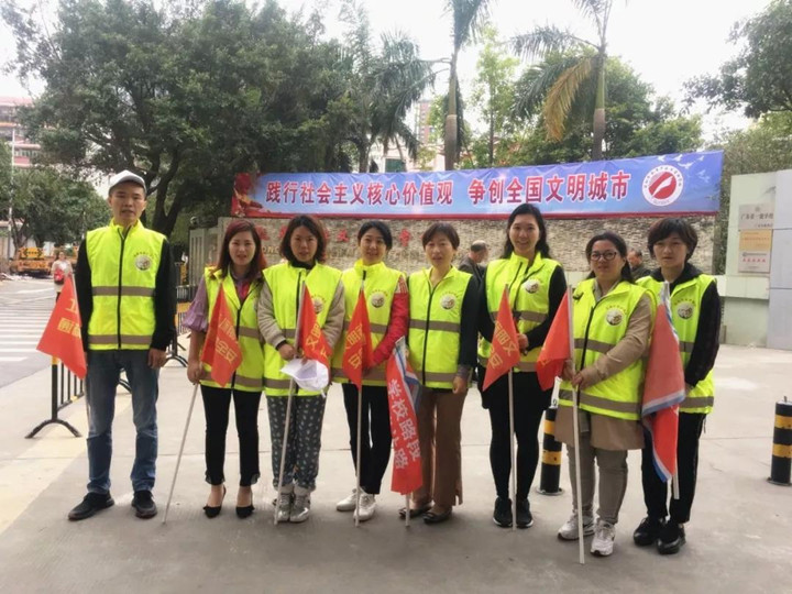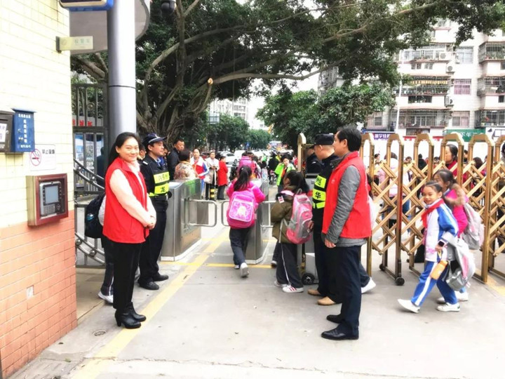2018年秋季學(xué)期,無論刮風(fēng)下雨,每天上下學(xué)都有義工家長值日崗堅(jiān)守在學(xué)校門口,負(fù)責(zé)交通疏導(dǎo)、引導(dǎo)學(xué)生井然有序進(jìn)入校園等工作。義工家長把安全放在了第一位,肩擔(dān)安全重任,各義工家長也能獨(dú)擋一面,共同在成為建設(shè)平安校園,保師生的安全,那一道道旗、一句句暖心安全提醒,都在涌動著我們每一個(gè)人的心揮,成為了我們學(xué)校一道亮麗的風(fēng)景線。