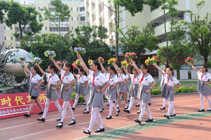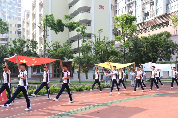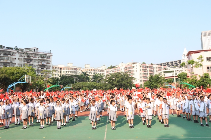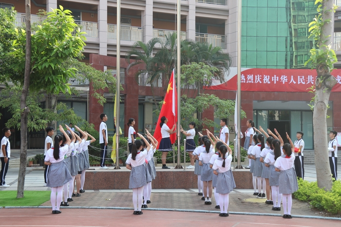 2019年9月30日,深圳市龍華中英文實(shí)驗(yàn)學(xué)校舉行了題為“我與祖國共奮進(jìn)”的主題升旗儀式,全體師生員工在運(yùn)動場上莊重參加儀式,齊唱《我和我的祖國》,共同隆重慶祝中華人民共和國成立70周年,奏響禮贊新中國、奮進(jìn)新時(shí)代的主旋律,深入開展愛國主義教育。