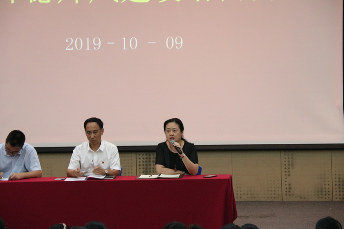 2019年10月9日,學(xué)校召開了本學(xué)期第二次全體干部、教師大會(huì),進(jìn)行了師德、“創(chuàng)文”、安全等方面的培訓(xùn),同時(shí)對(duì)2019-2020學(xué)年教師工資晉級(jí)方案進(jìn)行了解讀,會(huì)議由金玉善副校長(zhǎng)主持。