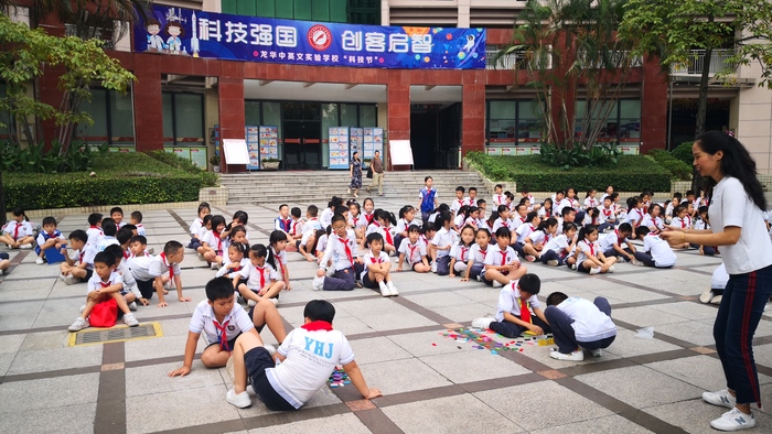 為積極響應國家“科教興國”的號召,培養(yǎng)學生從小樹立“學科學、愛科學、用科學”的理想和意識,龍華中英文實驗學校小學部開展了以“科技強國 創(chuàng)客啟智”為主題的“校園科技節(jié)”系列活動。