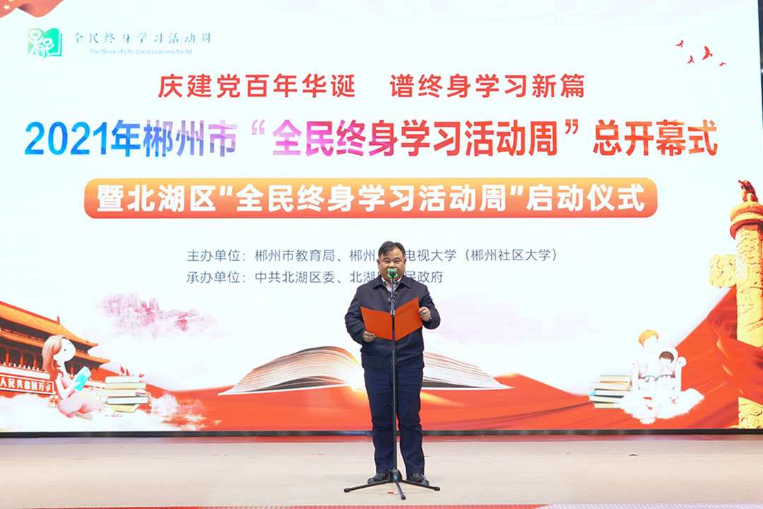郴州市教育局黨委書記、局長(zhǎng)肖正科表示,“全民終身學(xué)習(xí)活動(dòng)周”是郴州終身教育的一項(xiàng)重要品牌,自舉辦以來(lái),堅(jiān)持服務(wù)區(qū)域經(jīng)濟(jì)社會(huì)發(fā)展、服務(wù)人民群眾素質(zhì)提升,成效顯著,產(chǎn)生了積極廣泛的社會(huì)影響。本次活動(dòng)將緊緊圍繞“慶建黨百年華誕,譜終身學(xué)習(xí)新篇”主題,引導(dǎo)各地結(jié)合實(shí)際廣泛開展終身學(xué)習(xí)活動(dòng),整合優(yōu)秀學(xué)習(xí)資源,強(qiáng)化全民教育和教育資源共享功能,深入開展社區(qū)教育和老年教育,積極營(yíng)造全民終身學(xué)習(xí)的濃厚氛圍。