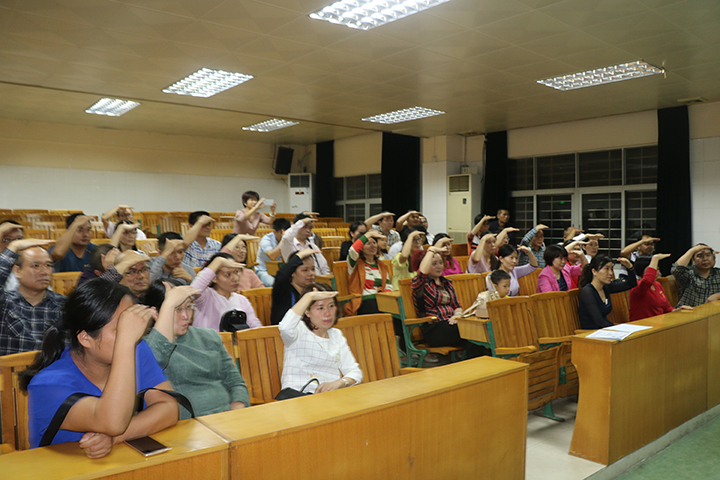 講座中,祝主任通過觸動心靈的演講、親子游戲和感情的渲染力,使現(xiàn)場大部分的老師、家長和同學(xué)都流下了眼淚,體驗愛的感覺。