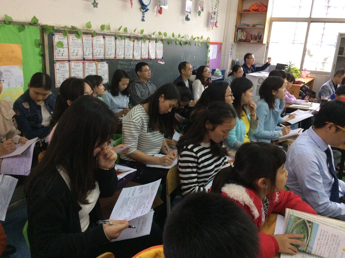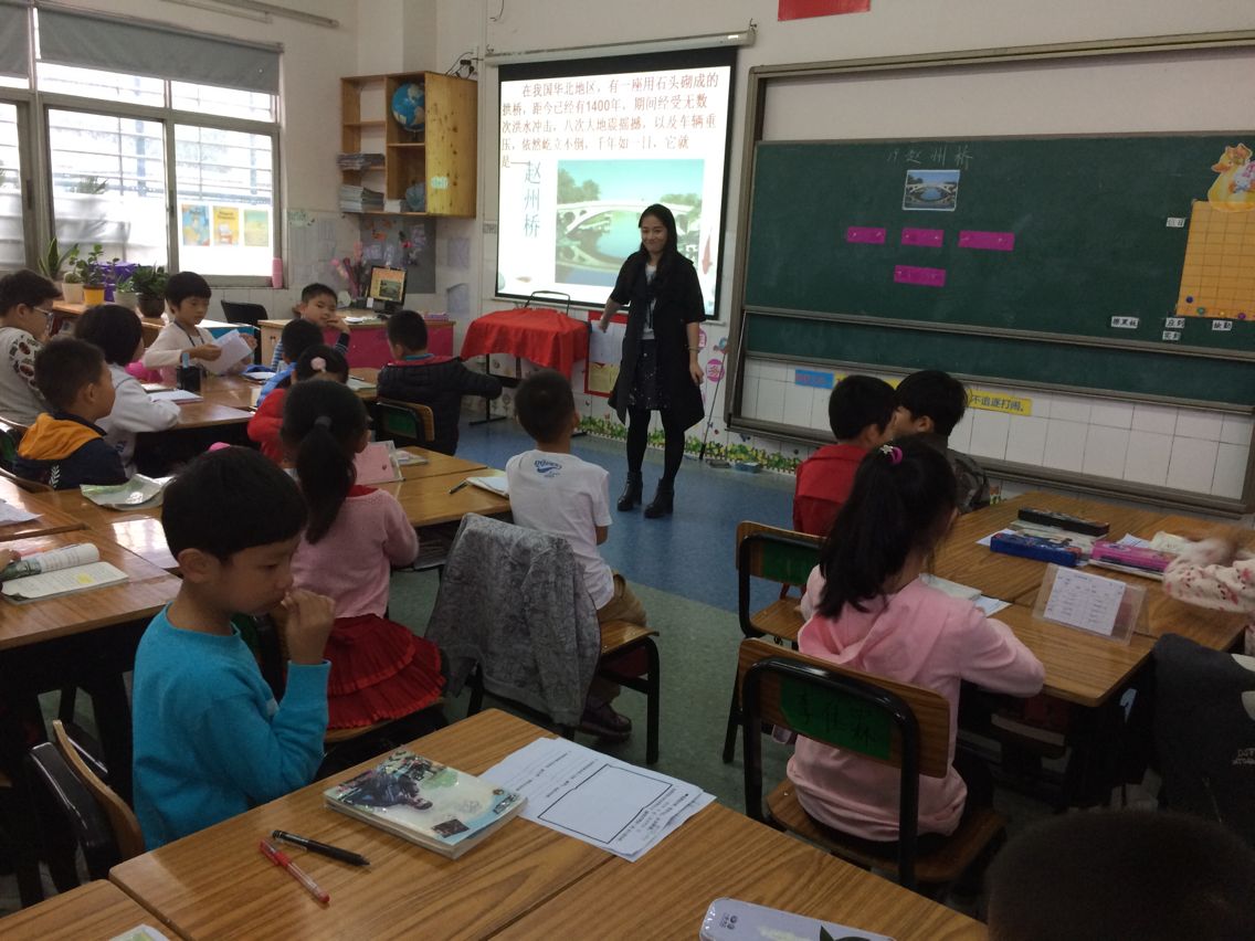 活動首先由中英文學校郭蘇陳老師和李松蓢學校曾老師,在中英學校的三(B)班和三(E)班,就《趙州橋》一文,上了兩節(jié)風格各異的示范課。雖然由于氣溫的驟降有些冷,但是交流的老師們隊聽得認真,上課的孩子們個個都熱情高漲。兩個班的同學們同,不管是小組交流展示,還是個人和老師互動,都是那么認真,大方,自信,思路開闊,語言組織得有序流暢,而且能抓住問題的重點進行回答,充分展示了中英文學校國際部小班化,小組學習、展示的優(yōu)勢。而兩位老師在課堂上所展示的不同的教學法,也更讓大家在不停的思考中,眼前一亮,大有受益。郭蘇陳老師用她嫻熟的對課堂的駕馭,舉手投足間,一顰一笑里,和學生們在完美默契的互動中,淋漓盡致的展示了國際部的“明、學、研、展、測”五步習案教學法。而曾老師也帶著學生們,從字詞入手,在文章重點段落的分析中,讓學生充分的理解了文章的中心思想 。一首《祖國,我不用言語》的小詩,讓學生們在感受著語言的唯美中,結(jié)束了一節(jié)課的學習。